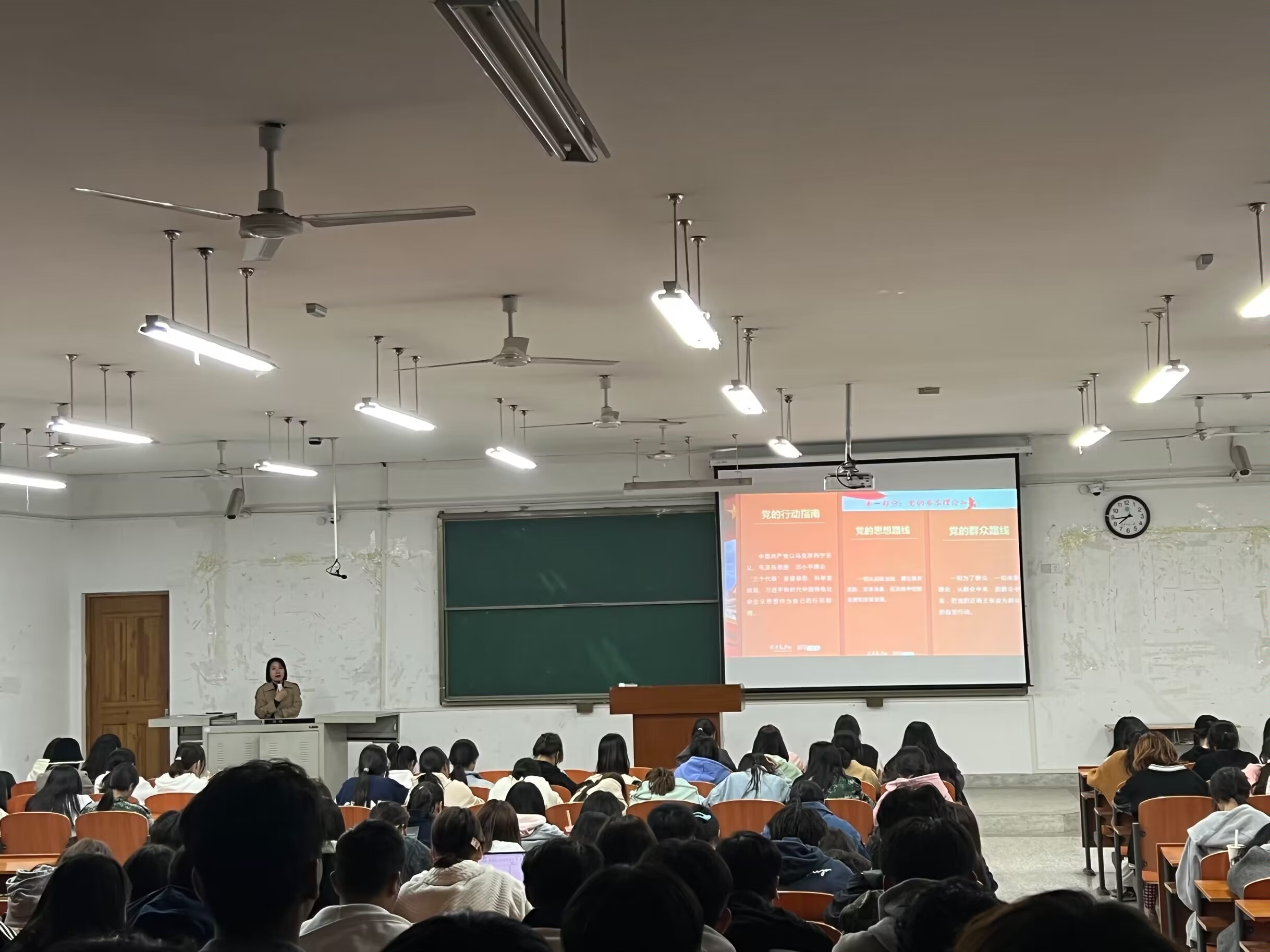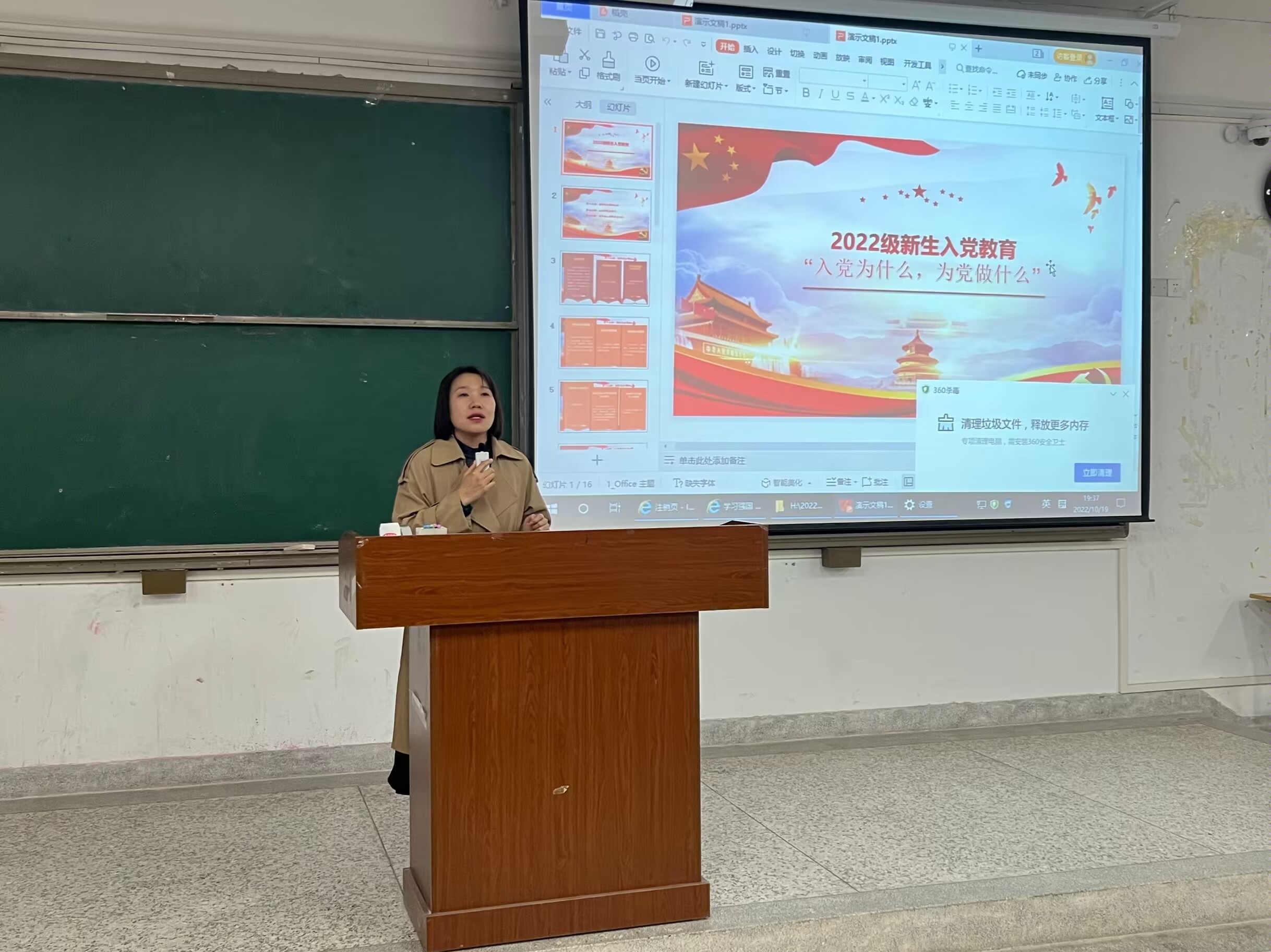 10月19日晚,赛马会六合彩 党务秘书、本科生支部书记胡天佼在文津楼A511,为2022级新生开展入党启蒙专题教育,2022级全体新生参与讲座。